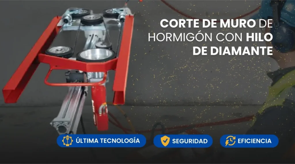 Utilizamos hilo de diamante para cortes de gran tamaño en muros de hormigón, ofreciendo un acabado exacto y sin daños colaterales.