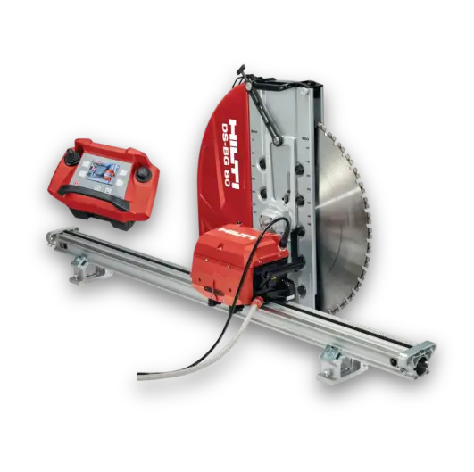Sierra con railes que asegura cortes precisos y controlados en muros, reduciendo esfuerzo y tiempo de trabajo.